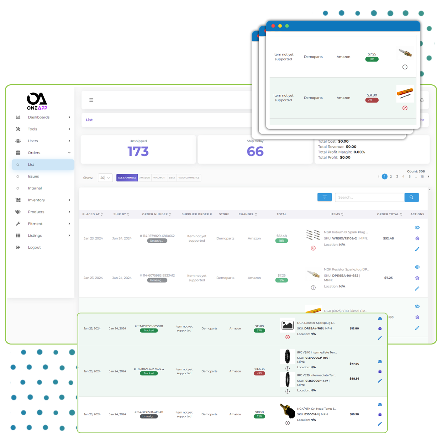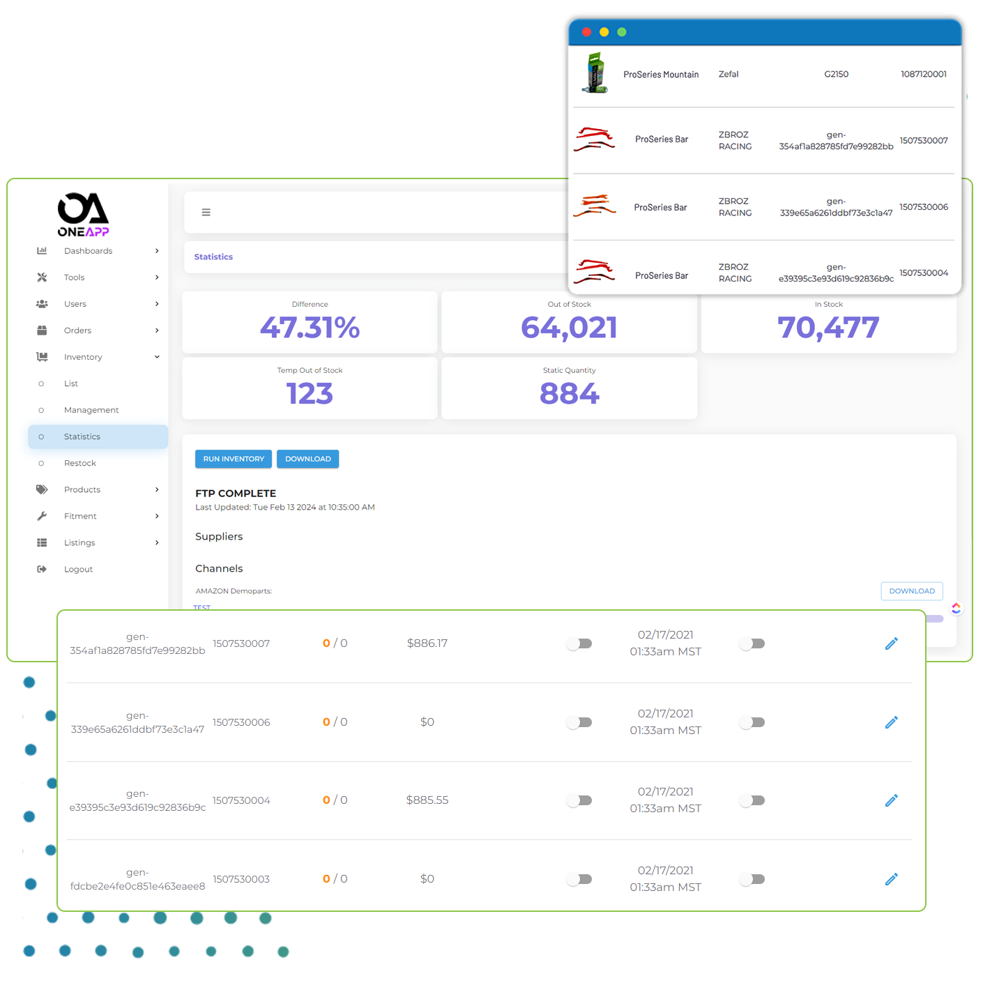 Synchronize all of your supplier inventory files with your internal inventory all while keeping online sales channels up to date and manage everything through oneApp e-commerce solutions.
